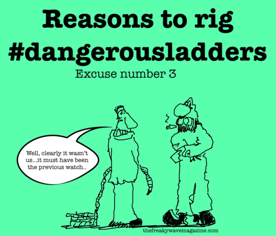 Day 3 #dangerousladders – excuse 3 Share this: Share on X (Opens in new window) X Like Loading... October 3, 2018 thefreakywavemagazine